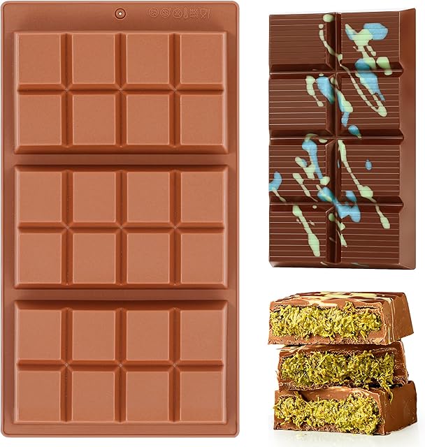 Order 1 Pc Chocolate Bar Mold Deep Dubai 0.85 Inch Stuffed Large Chocolate Molds Silicone Break Apart Thick Silicone Molds for Candy Bar (8 Snap) today for a best price.