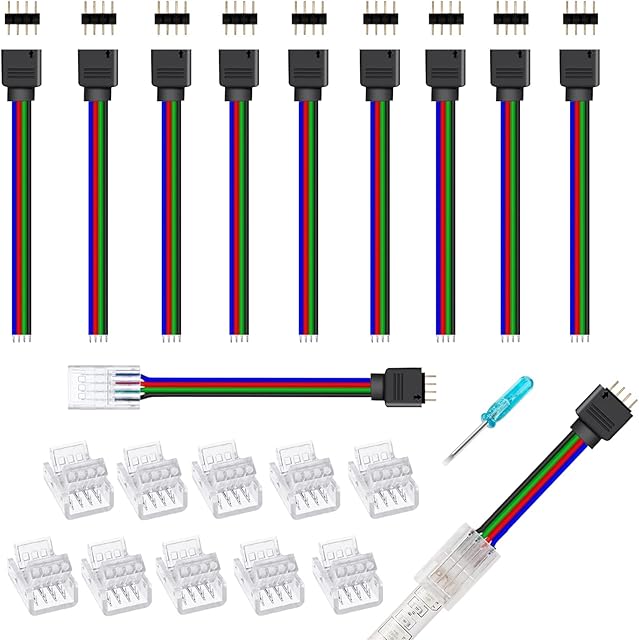 Order 10 mm Wide Strip to Controller Jumper,10 Packs Solderless 4 pin Track Lighting Connectors for 10mm 4pin 2835 5050 RGB LED Strip Light today for a best price.