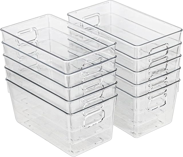 10 PACK Clear Storage Bins Clear Storage Containers for Kitchen Pantry Organization, Organizing Bins with Built in Handles, Cabinet Organizers