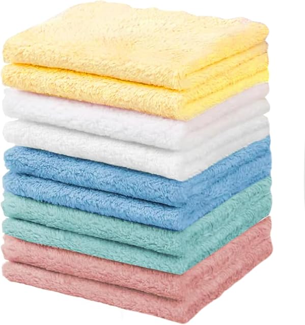 10 Pack Microfiber Coral Fleece Washcloths, Ultra Absorbent and Soft Face Towel, 11.8″ X 11″, Perfect Wash Cloths for Bathroom, Gym, Travel, Spa and Makeup
