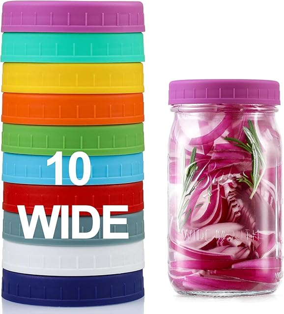 Order 10 Pack Plastic Wide Mouth Mason Jar Lids for Ball, Kerr and More – Multicolor Storage Caps for Mason Jars, Canning Jars – Leak-Proof, Dishwasher Safe & Food Grade today for a best price.