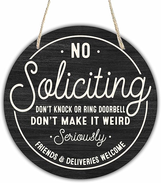 Order 10″ Wooden Sign for Front Door – No Soliciting, Don’t knock or ring doorbell – House Welcome Sign, Funny Round Wood Hanging Sign for House decor home decor, gifts & accessories – C01 today for a best price.