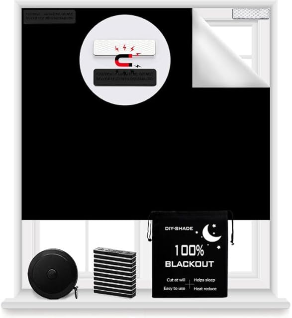 100% Blackout Blind Magnetic Window Cover 118 x 57Inch,No Drill,Cut Any Size/Shape,Portable Black Out Shades Curtains for Nursery Bedroom,Rv,Media Room with Magnetic Closure