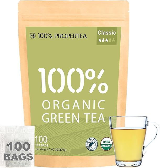 Order 100% Propertea Organic Green Tea Bags, 100 Count Eco-Friendly Tea Bags, Classic Taste, Caffeinated, Rich in Antioxidants, Resealable Pouch today for a best price.