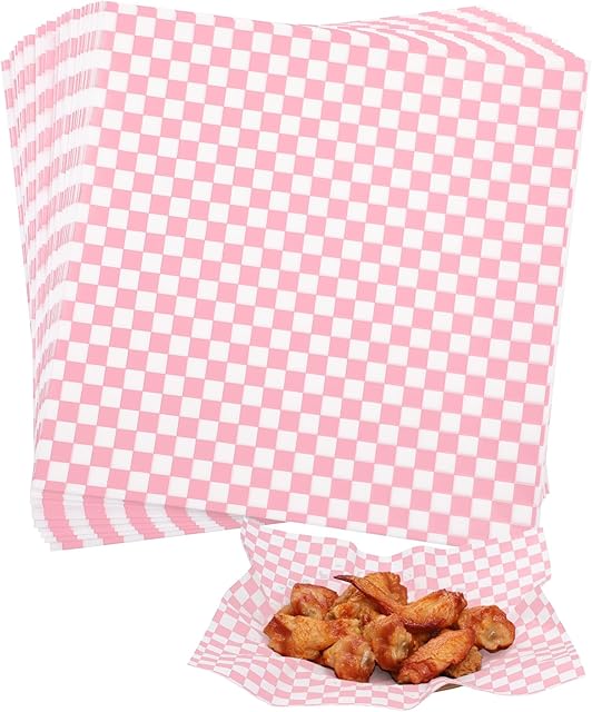 Order 100 Sheets Pink and White Checkered Deli Paper Sheets 12 * 12 Inch, Food-graded Greaseproof Paper Basket Liners for Sandwiches, Burgers, Fries Wrapping Paper for Party, Festival and Outdoors today for a best price.