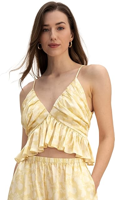 100% Silk Camisole for Women 19MM Printed Charmeuse Silk Pleated Top with V Neck V Back Sexy Cool for Summer