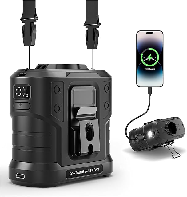 Order 10000mAh Portable Waist Fan Rechargeable, 5 Speeds 16000RPM Brushless Motor Strong Airflow, Hands-Free Wearable Cooling Personal Shirt Belt Fan for Outdoor Jobsite, Camping, Travel today for a best price.