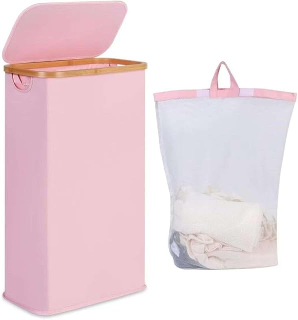 Order 100L Hampers for Bedroom, Dirty Clothes Basket for Dorm, Office and Laundry Room, Foldable Hamper with Bamboo Handle,Rolling Laundry Basket with 1 Removable Bag,Pink,No Wheel today for a best price.