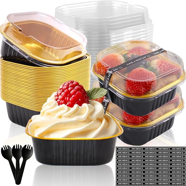 Order 10oz Mini Cake Pans With Lids 50 Pack Aluminum Foil Square Brownie Baking Cups,Disposable Loaf Pans With Lids and Spoons Stickers,Large Cupcake Pans Muffin Tins Cake Container(Black) today for a best price.