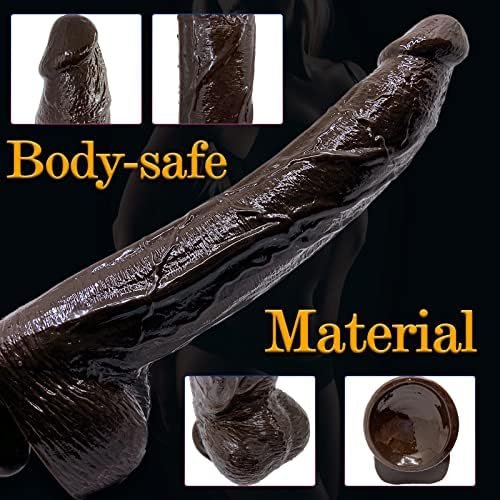 12.8 Inch Realistic Dildos Small Glans Large Testis, Chocolate-Color Suction Cup Thick Big Dildo, Dong With Balls Fake Girthy Sex Toy For Women, Women Masturbation For Vaginal Anal Sex Product