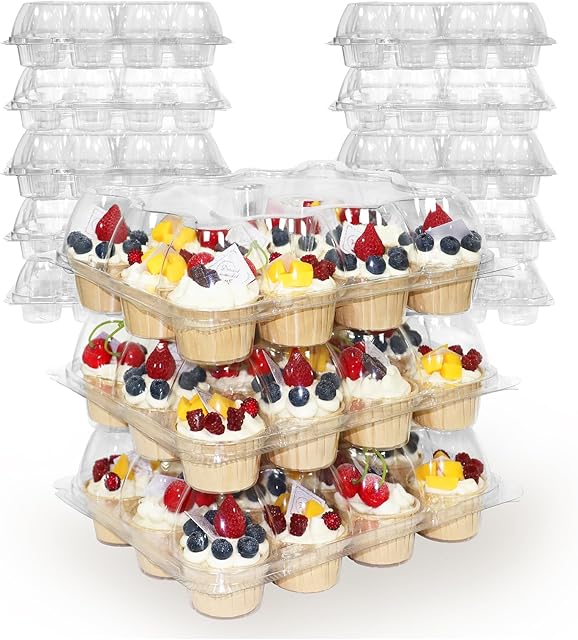 Order 12 Count x 12 Sets Plastic Cupcake Containers, Durable and BPA-Free Cupcake Holder with Lid for Easy Transport Storage, Stackable Clear Cupcake Carriers, Reusable Dessert Boxes today for a best price.