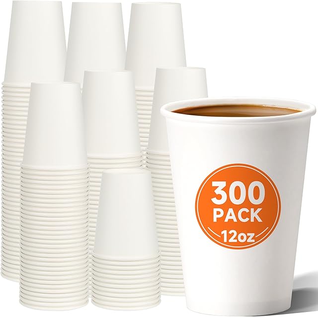 12 oz Disposable Paper Coffee Cups [300 Pack], White Hot Coffee Cups 12 oz, Thickened Design for Cafes, Bistros, Parties, and Events