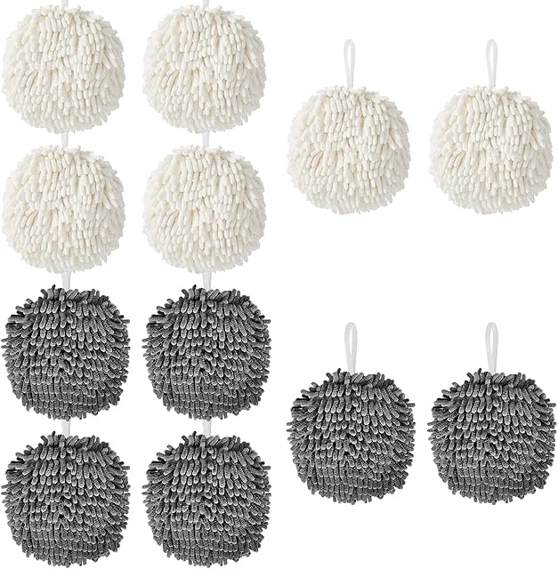 Order 12-Pack Chenille Fuzzy Ball Hand Towels, 7.1 Inch Soft Absorbent Microfiber Towels, Quick-Dry Cleaning Cloths for Kitchen, Home, Bathroom, Hanging Towels(6 White & 6 Grey) today for a best price.