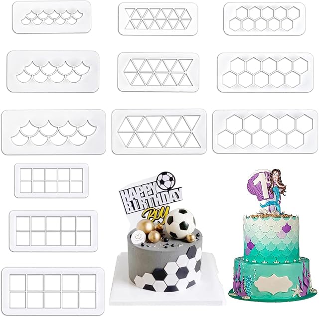 Order 12 Pcs Cake Fondant Cutter, Fish Scale Fondant Cutters 4 Size Geometric Biscuit Cutters Cake Decorating Cookie Cutter Cake Border Decorating Tool for Square & Hexagon Cookie Cutters today for a best price.