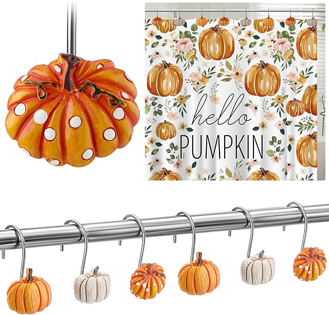 Order 12 Pcs Pumpkin Shower Curtain Hooks Halloween Thanksgiving Day Fall Shower Curtain Hooks Orange Farmhouse Rustic Rings Hangers for Bathroom Decor(Spot) today for a best price.