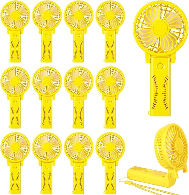 12 Pcs Softball Portable Fans Foldable Softball Handheld Fans Bulk with Lanyard Small Softball Personal Fan Favor for Team Gift Outdoor Sport Game Cooling Favors, Battery Not Include
