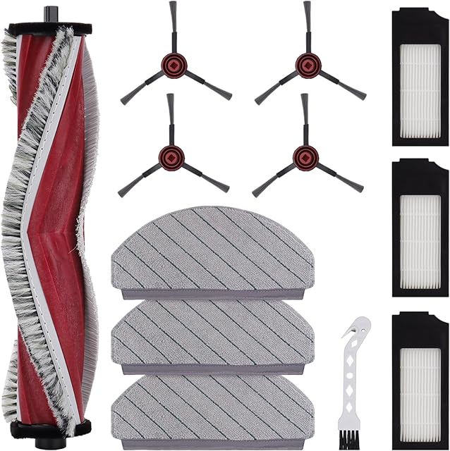 Order 12 Pcs Vacuum Replacement Part for Yeedi C12 Plus / C12 Pro Plus and for ECOVACS DEEBOT N20 Plus / N20 Pro Plus – 1 Main Roller, 3 Filters, 4 Mop Pads, 3 Side Brushes Attachments, 1 Cleaning Brush today for a best price.