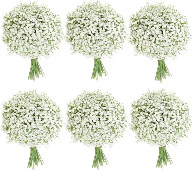 120 Pcs Artificial Flowers,Babys Breath Artificial Flowers,White Babys Breath Flowers Artificial Bulk,120 Pcs Real Touch Flowers for Wedding Party Home Garden Decoration
