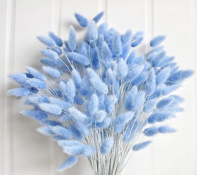Order 120 PCS Blue Dried Pampas Grass Decor, 17-inch Pompas Floral, Dry Flowers for Decoration, Pampas Grass in Bulk Tall, Blue Bunny Tails Dried Flowers for Boho Wedding Decor today for a best price.