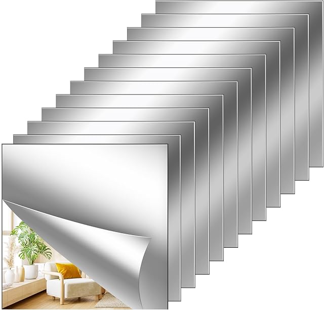 Order 12Pack Acrylic Flexible Mirror Sheets,12×12 Inch Self-Adhesive Mirror Tiles,Square Cuttable Wall Stickers Non Glass Safety Reflective for Home Wall DIY Decor today for a best price.