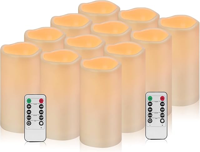 12Pcs Flickering Flameless Candles Waterproof Large (D 3″ x H 6″) LED Candles, Fake Pillar Outdoor Indoor Battery Operated Candles with Remote for Home/Wedding/Christmas/Holiday Décor