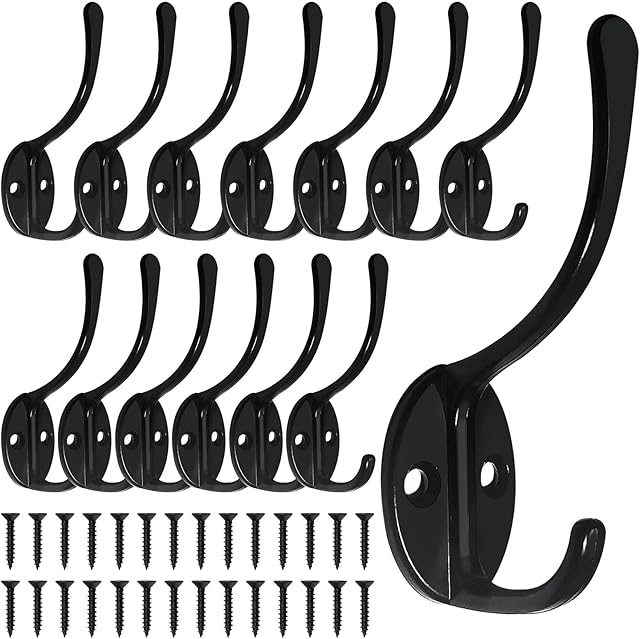 Order 14 Pack Coat Hooks Wall Mounted with 28 Screws, Heavy Duty Black Towel Hooks Metal Double Hooks, No Rust Retro Rustic Wall Hooks for Hanging Towel, Coat, Scarf, Bag, Hat, Cup, Key today for a best price.