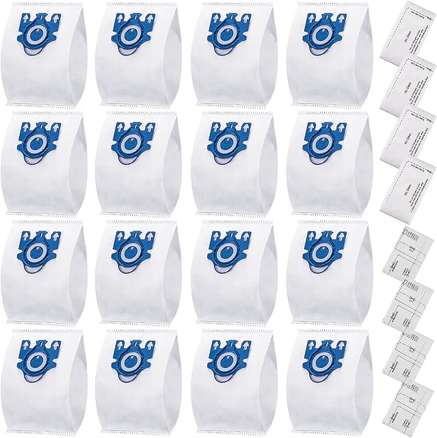 16 Pack Miele AirClean 3D GN Vacuum Cleaner Bags for Miele Vacuum Classic C1, Complete C1 C2 C3, S227/S240, S270, S400,S400i-S456i S2, S5, S8 Series with 4 Motor Protection Filters, 4 AirClean Filters