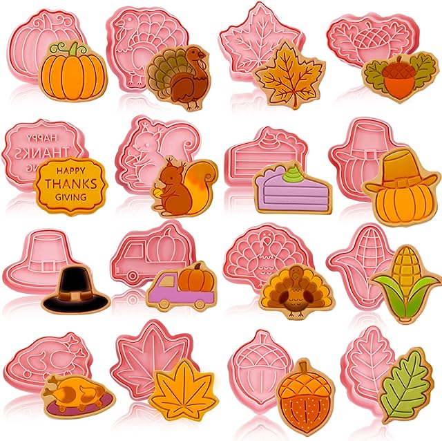 Order 16 Pieces Fall Thanksgiving Cookie Cutters with Plunger Stamps Set Fall Biscuit Mold Maple Leaf Turkey Pumpkin 3D Cookie Stamper Plastic DIY Cookie Tools for Thanksgiving Day Baking Fondant Supplies today for a best price.