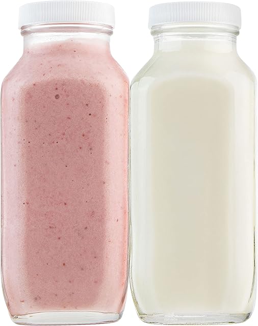 Order 16oz Square Glass Milk Bottles with Plastic Airtight Lids -Vintage Reusable Dairy Drinking Jars Containers for Milk, Yogurt, Smoothies, Juice, Kefir, & Water -2 Pack 16 oz Glass Bottles with Lids today for a best price.