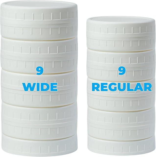Order 18 Pack White Plastic Mason Jar Lids with Silicone Rings, 9 Wide Mouth & 9 Regular Mouth Canning Lids for Ball & Kerr and More, 86mm &70mm Plastic Mason Jar Lids today for a best price.