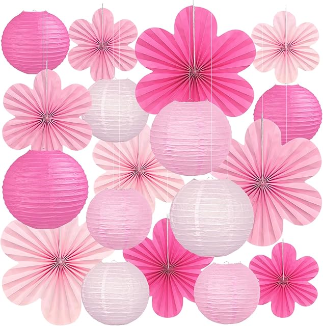 Order 18 Pcs Pink Party Decoration Set, Hanging Pink Paper Lanterns Paper Flowers Fans for Girls Women Birthday Wall Baby Shower Wedding today for a best price.