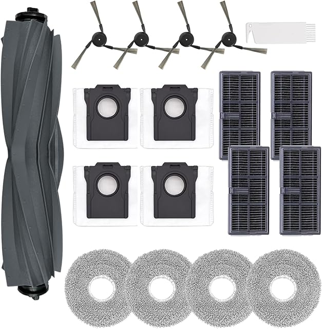 18Pcs Replacement Parts for Dreame X40 Ultra,L40 Ultra Vacuum Cleaner Accessories Kit, 1 Main Brush 4 Mop Pads 4 Hepa Filters 4 Vacuum Bags 4 Side Brushes, 1 Cleaning Brush