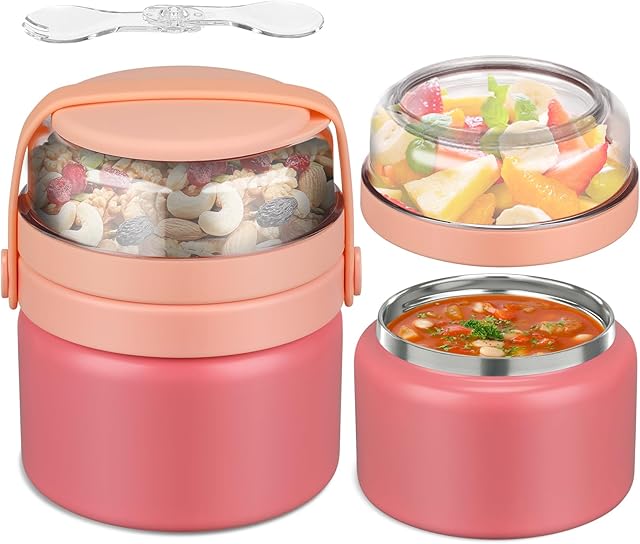 Order 2 in 1 Double Insulated Food Jar 8oz Soup Thermo with Snack Container Kids Thermo for Hot Food Lunch Containers Wide Mouth Vacuum Stainless Steel Leak Proof for School Travel(Pink) today for a best price.