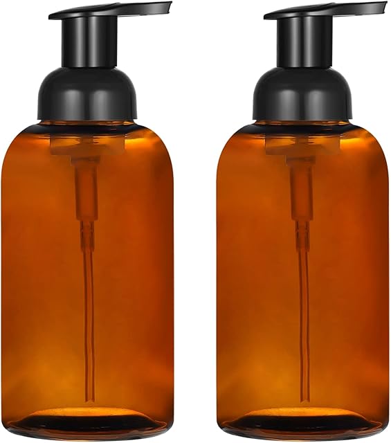 Order 2 Pack Amber Glass Jar Soap Dispenser with Foaming Pump, 13 Ounce Amber Round Bottles Dispenser with Foaming Pump today for a best price.