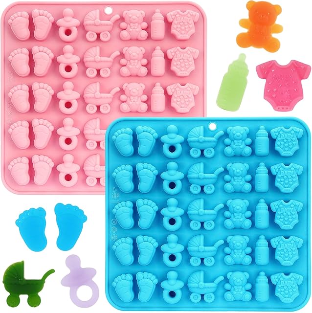 Order 2 Pack Baby Shower Chocolate Molds, Babies Silicone Candy Molds with Onesie Feet Pacifier Cradles Bear Bottle, Babies Chocolate Molds for Party Cake Candy Gummy Cupcake Topper Decorations (Baby) today for a best price.