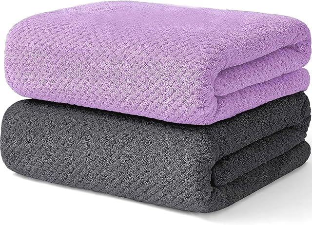 Order 2 Pack Bath Towel Set Waffle Bath Towel Set 2 Piece 27″ x 55″ 1Grey+1Purple today for a best price.