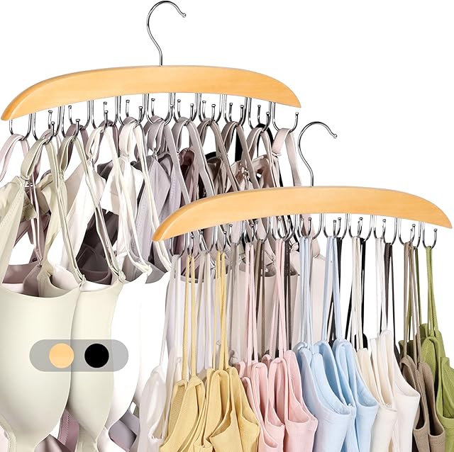 Order 2 Pack Bra Hangers for Closet Organizer, Bra Organizer with 40 Stainless Steel Hooks, Wooden Tank Top Hanger, Closet Organizers and Storage for Bras Camis Belts Ties, Natural today for a best price.