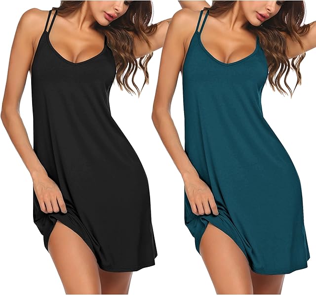 Order 2 Pack Nightgowns for Women Racerback Sleeveless Night Shirt Sexy Sleep Dress Spaghetti Strap Sleepwear S-XXXL,2 Pack-black/Peacock Blue,L today for a best price.