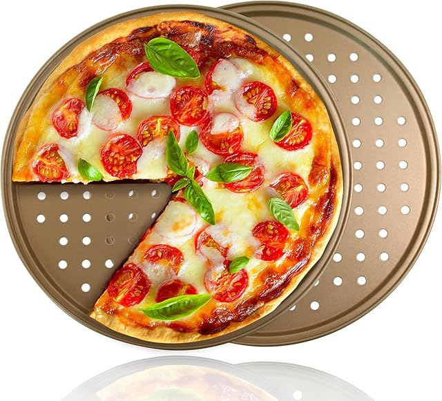 Order 2 Pack Pizza Pan,Pizza Pan for Oven,12.6 Inch Pizza Baking Pan,Non-Stick Golden Carbon Steel pizza pan with holes,Organosilicon Coated Crisper Pan,Dishwasher Safe today for a best price.