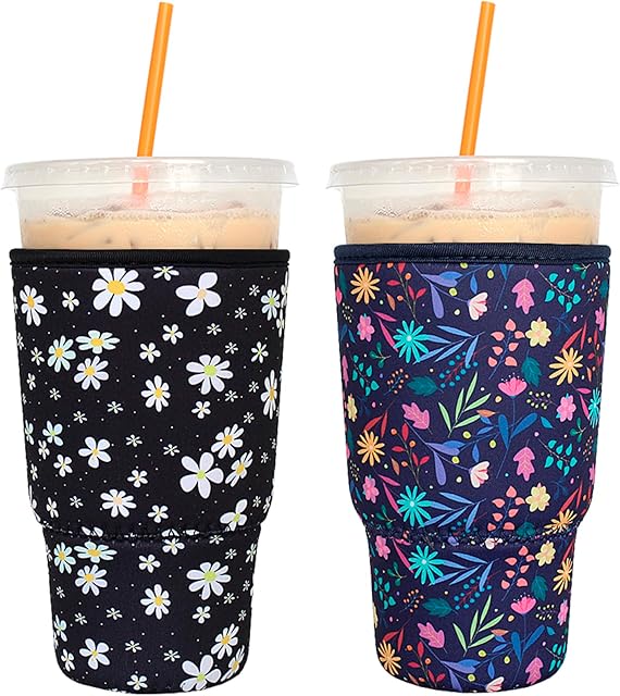 Order 2 Pack Reusable Iced Coffee Sleeves – FRRIOTN Insulator Sleeve for Cold Beverages, Neoprene Coffee Cup Holder (Flower, Large 32oz) today for a best price.