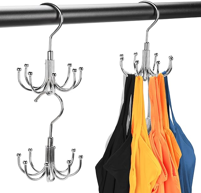 Order 2 Packs Bra Hanger for Closet, Stackable Tank Top Organizer 16 Hooks for Closet Organization and Storage, Stainless Steel Space Saving Clothes Hook Hanger for Belt, Tank Top, Bra, Tie, Scarves today for a best price.