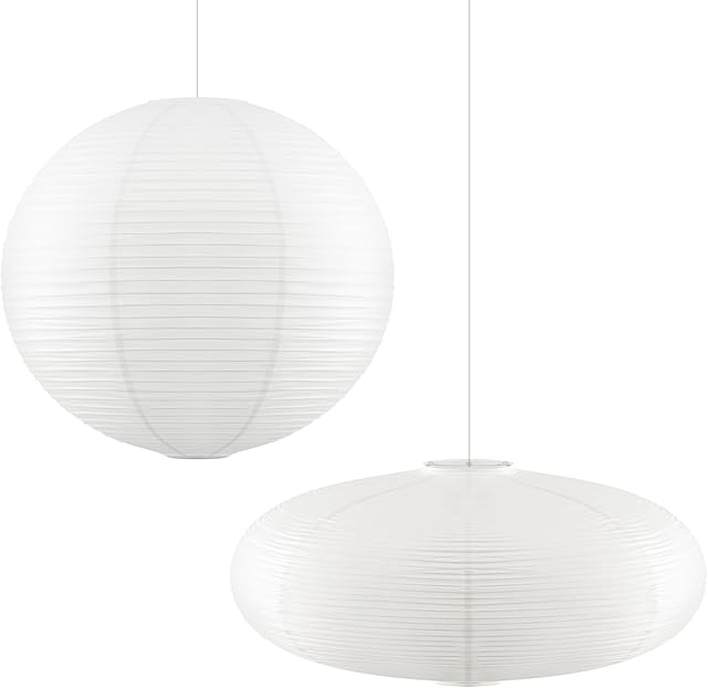 2 Pcs Chinese Paper Lanterns 20 Inch White Lampshade, Large Round and Oblate Pendant Lamp Shade, Rice Paper Lampshade Ceiling Foldable light shade for Interior Home Decoration
