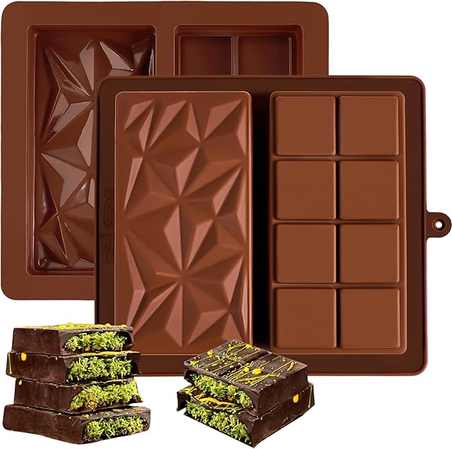 Order 2 PCS Dubai Chocolate Bar Molds, 1 Inch Deep Candy Bar Mold, Large Thick Stuffed Silicone Molds for Filling Pistachio Chocolate Bars (Diamond/Square) today for a best price.