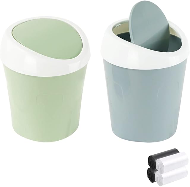 Order 2 Pcs Plastic Mini Wastebasket Trash Can with 120 Trash Bags, Tiny Desktop Waste Garbage Bin with Swing Lid for Home, Office, Kitchen, Vanity Tabletop, Bedroom, Bathroom (Blue + Green) today for a best price.