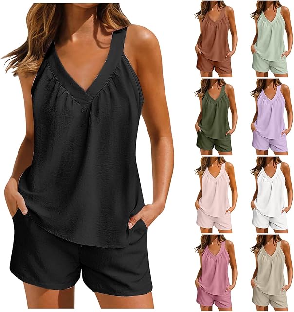 Order 2 Piece Lounge Sets for Women Soft Comfy Pajama V Neck Cami Pj Shorts Set with Pocket Summer Camisole Cute Sleepwear today for a best price.