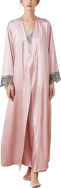 Order 2 Piece Women Satin Nightgowns and Robe Set Sexy Silk Slip Dress Chemise Nightdress today for a best price.