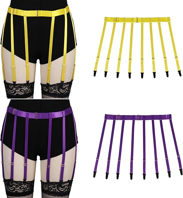 2 Pieces Women’s Garter Belts Punk Sexy Caged Thigh Stockings Straps Harness Body Belt Adjustment Size Harajuku Punk Gothic Fashion Rave Lingerie (Orange Yellow Purple)