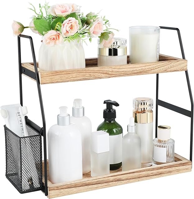 Order 2-Tier Bathroom Counter Organizer Standing Storage Shelf Wood Tray today for a best price.