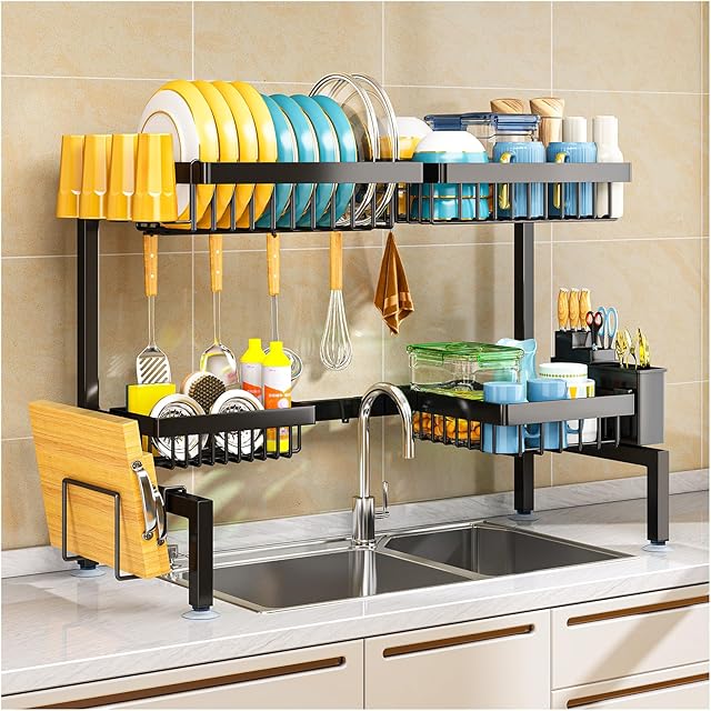2 Tiers 4 Baskets (one More Than Others) Over The Sink Dish Drying Rack,fits All Sinks (from 24.8″ to 35.4″),2-Tier Adjustable Sink Rack,Dishes Rack Kitchen Storage Organizer Space Saving
