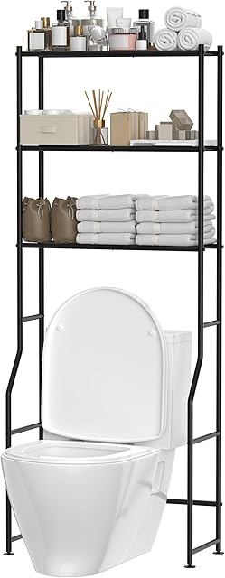 3-Tier Over The Toilet Storage, Freestanding Metal Bathroom Shelves, Space Saver Above The Over Toilet Storage Shelf for Bathroom, Black